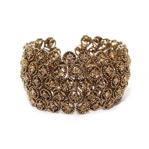 5 rows of gorgeous Topaz Swarovski Elements crystals handcrafted into this intricate design bracelet.
